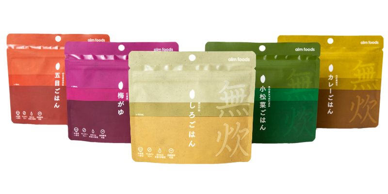 エイムフーズはアルファ米の【無炊-MUTAKI-】をはじめ、5年間保存が可能な秩父天然水